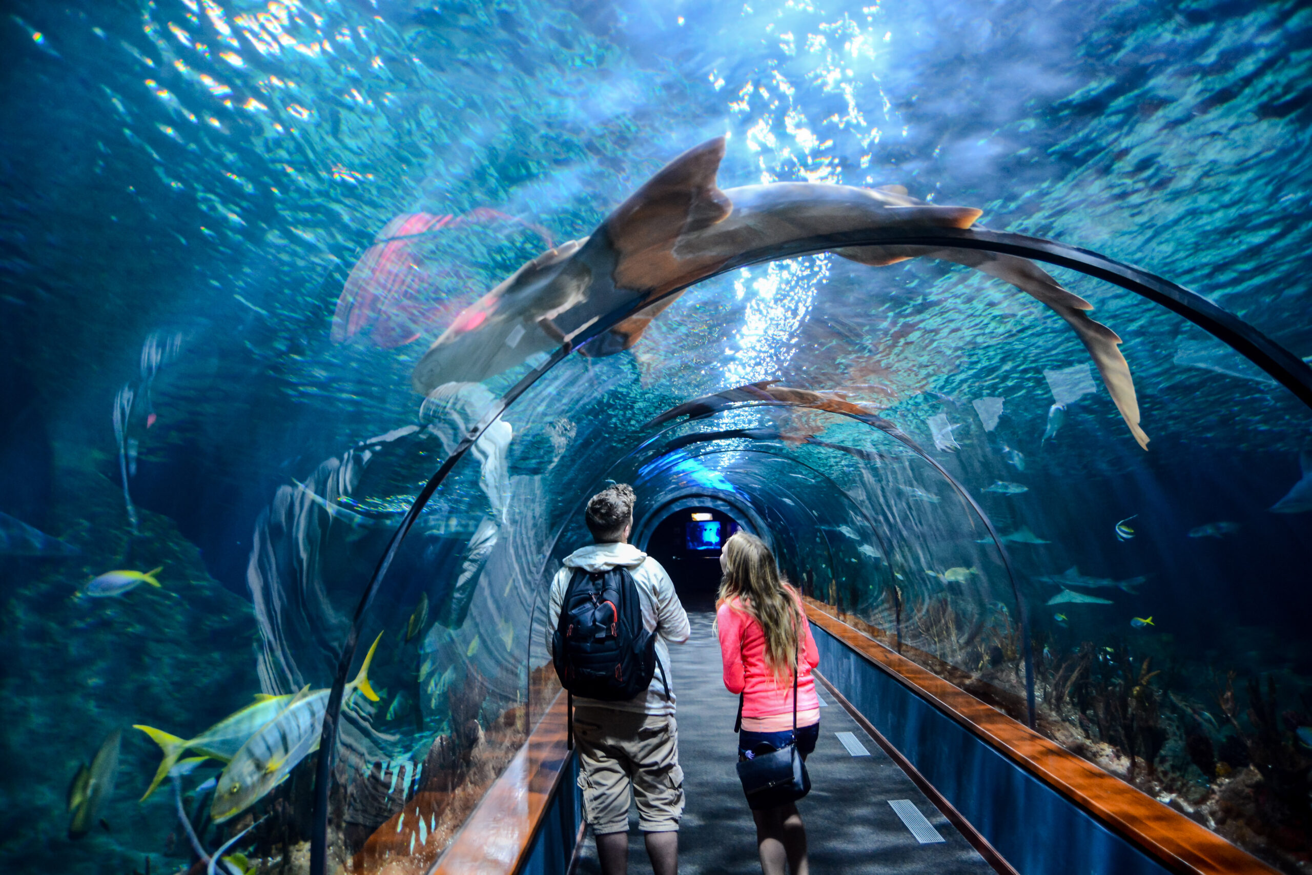 🦈 Walk through a breathtaking underwater tunnel surrounded by sharks and rays